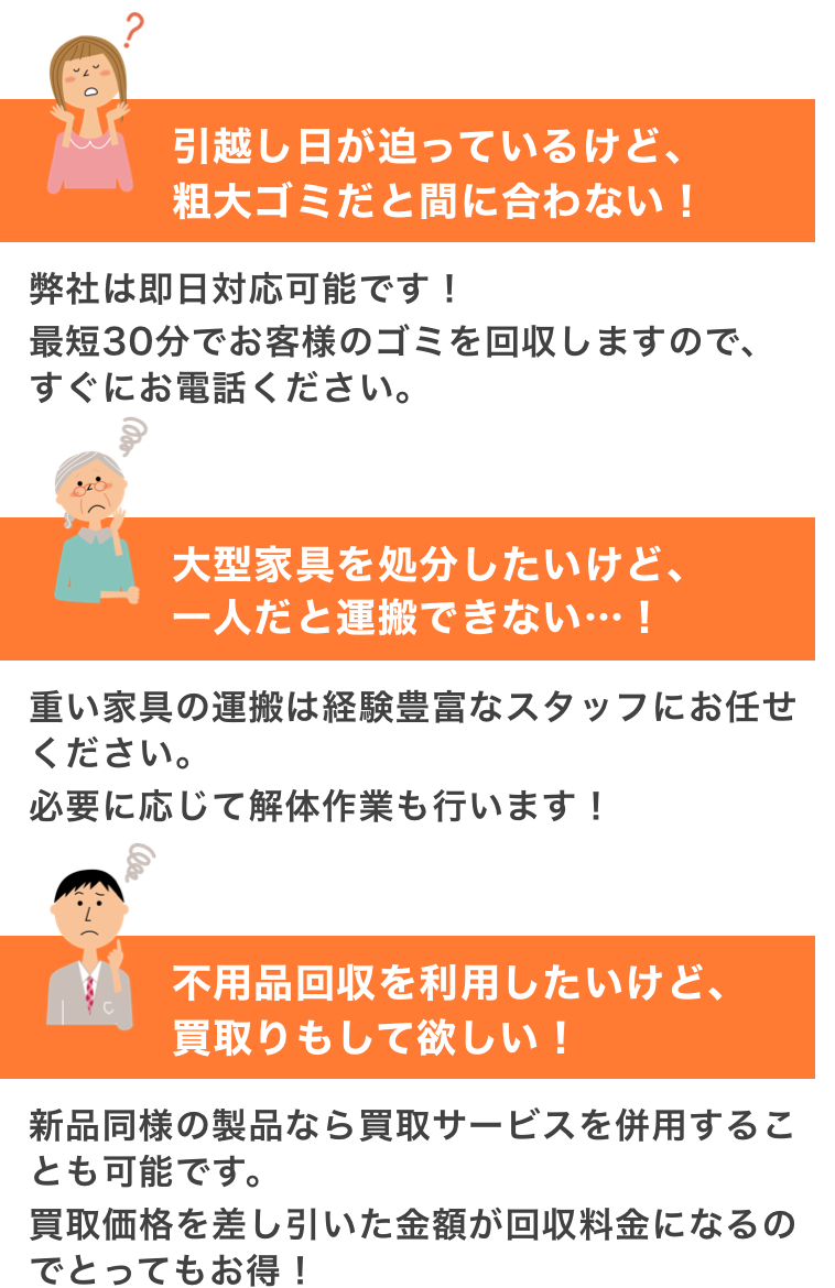 引越し時や模様変え時に出る不用品や粗大ゴミを回収!