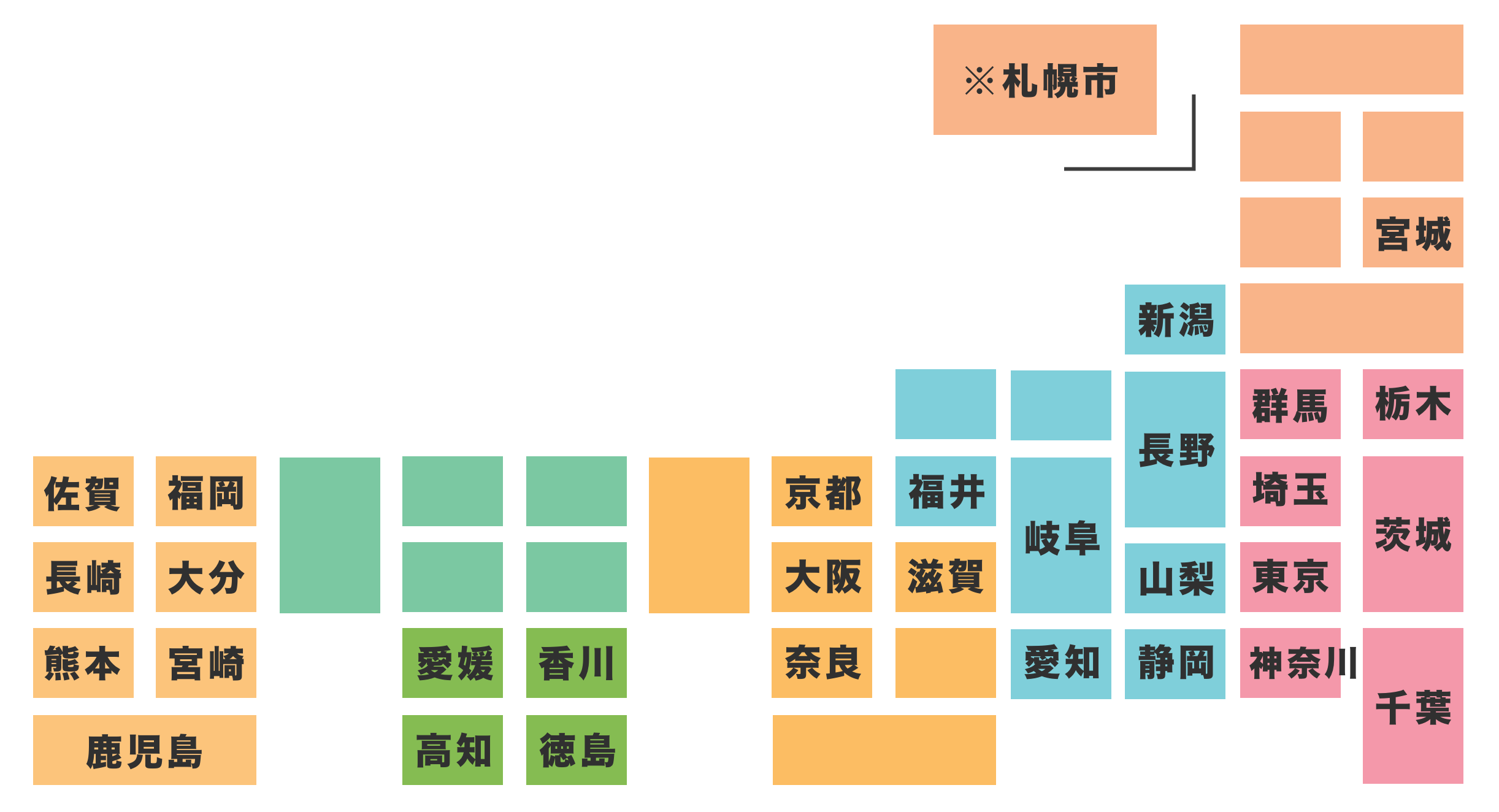 福岡県、大分県、佐賀県、長崎県、熊本県、宮崎県、鹿児島県